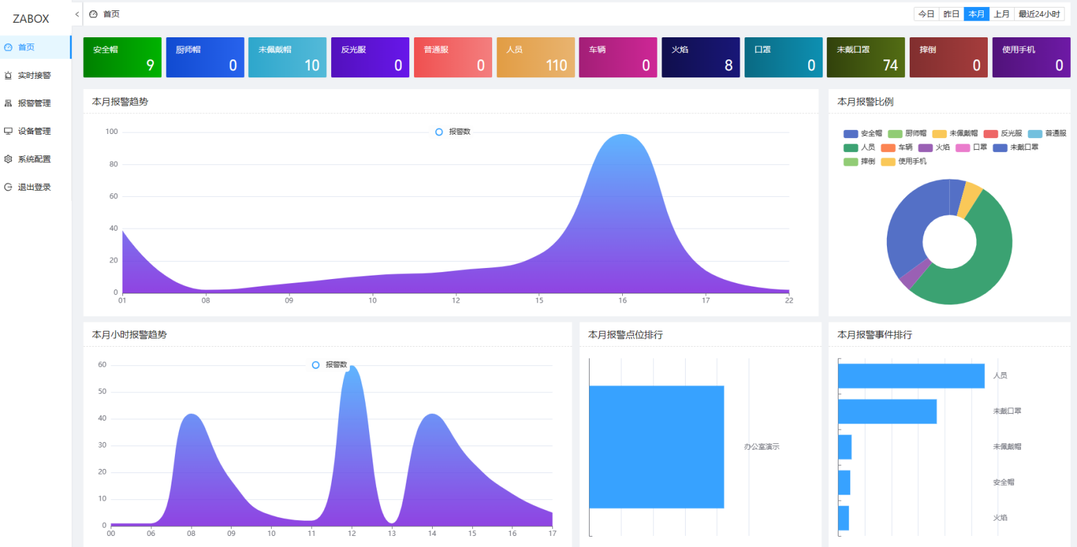 智能算法服務器本地化實時報警統計與接警抓拍圖片: ↓↓
